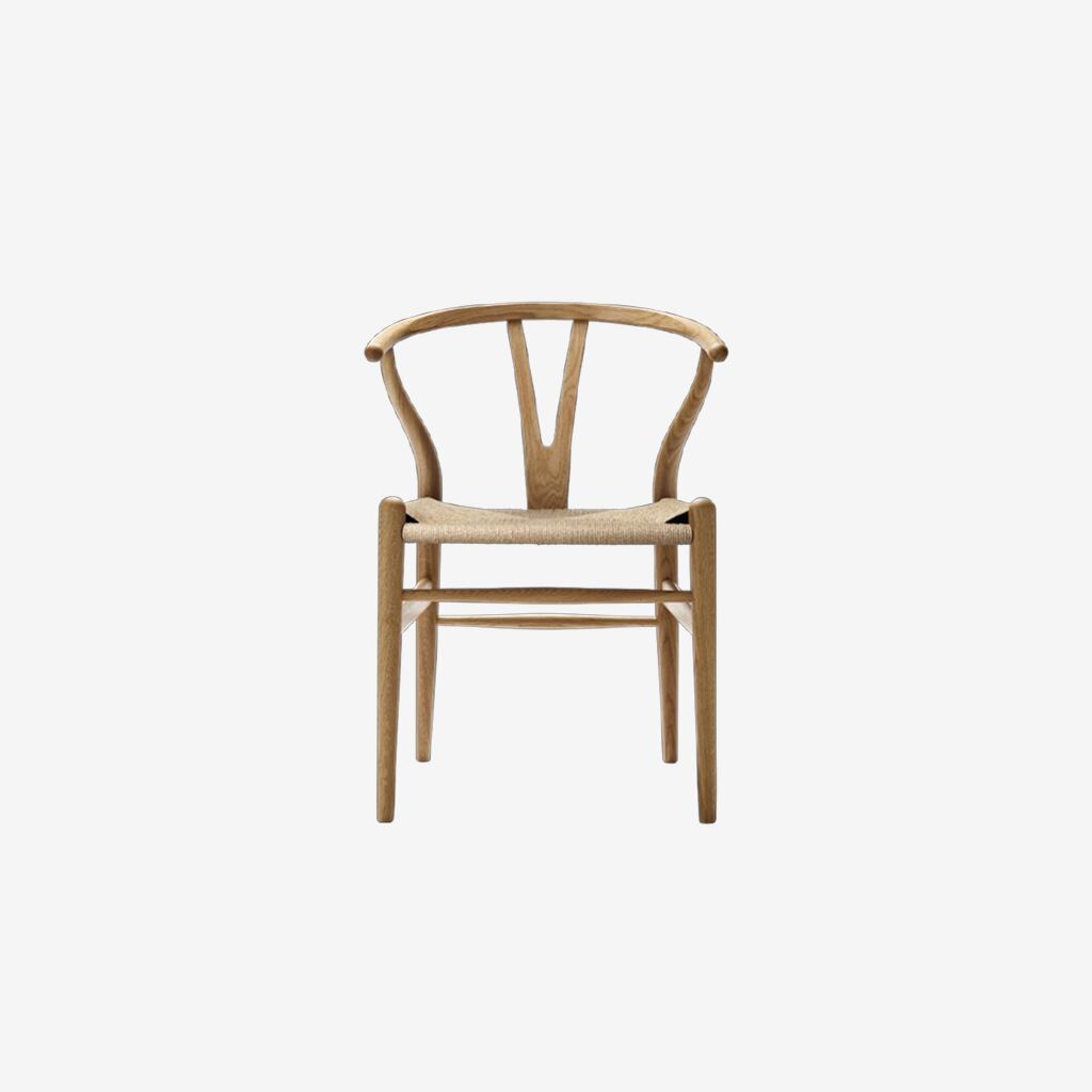 Carl Hansen & Son が製作する CH24、通称 Yチェア。デザインを手がけた ハンス J. ウェグナー によって1949年に生み出されて以来、北欧モダンを象徴する椅子として世界中で愛され続けています。背もたれの美しいY字形状は、軽やかさと強度を両立させる機能美の象徴でもあります。